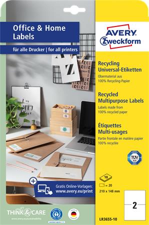 Etikett, univerzális, 210x148 mm, újrahasznosított, AVERY ZWECKFORM, 20 etikett/csomag
